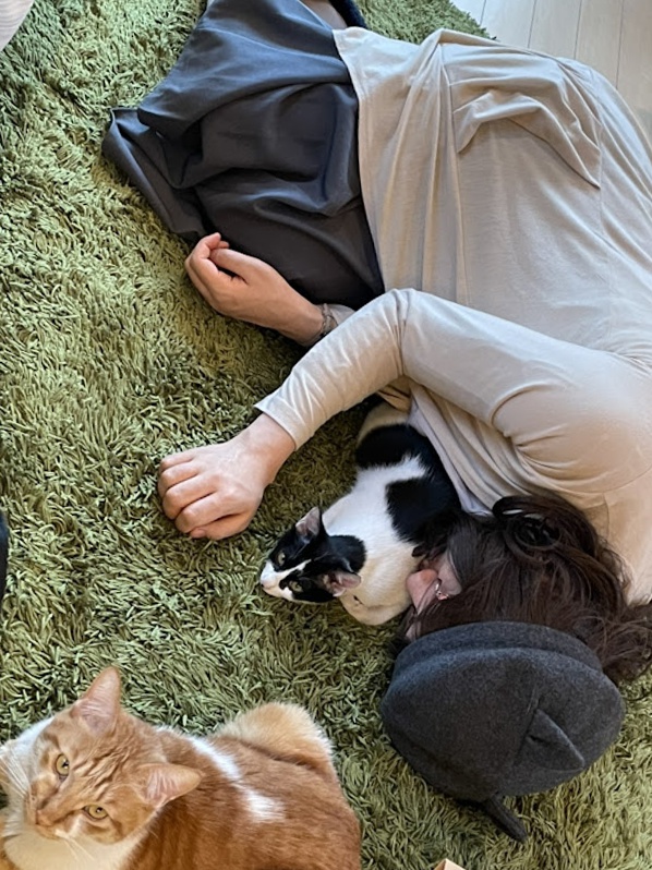 野良ちゃんも、飼い猫ちゃんとも、猫カフェの子たちとも、猫仲間として戯れます。