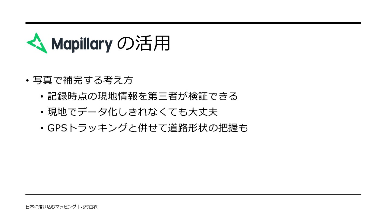 マッパーズサミットは、本年が初めての開催となる「OSMマッパーの集い」です。 私、北村由衣が発表タイトル「日常に溶け込むマッピング」として登壇し、30分間のお時間をいただき、発表と質疑応答をしました。